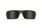 - Matte Olive wrap-around full coverage TR-90 frame designed for flexibility and extreme durability with raised black logo