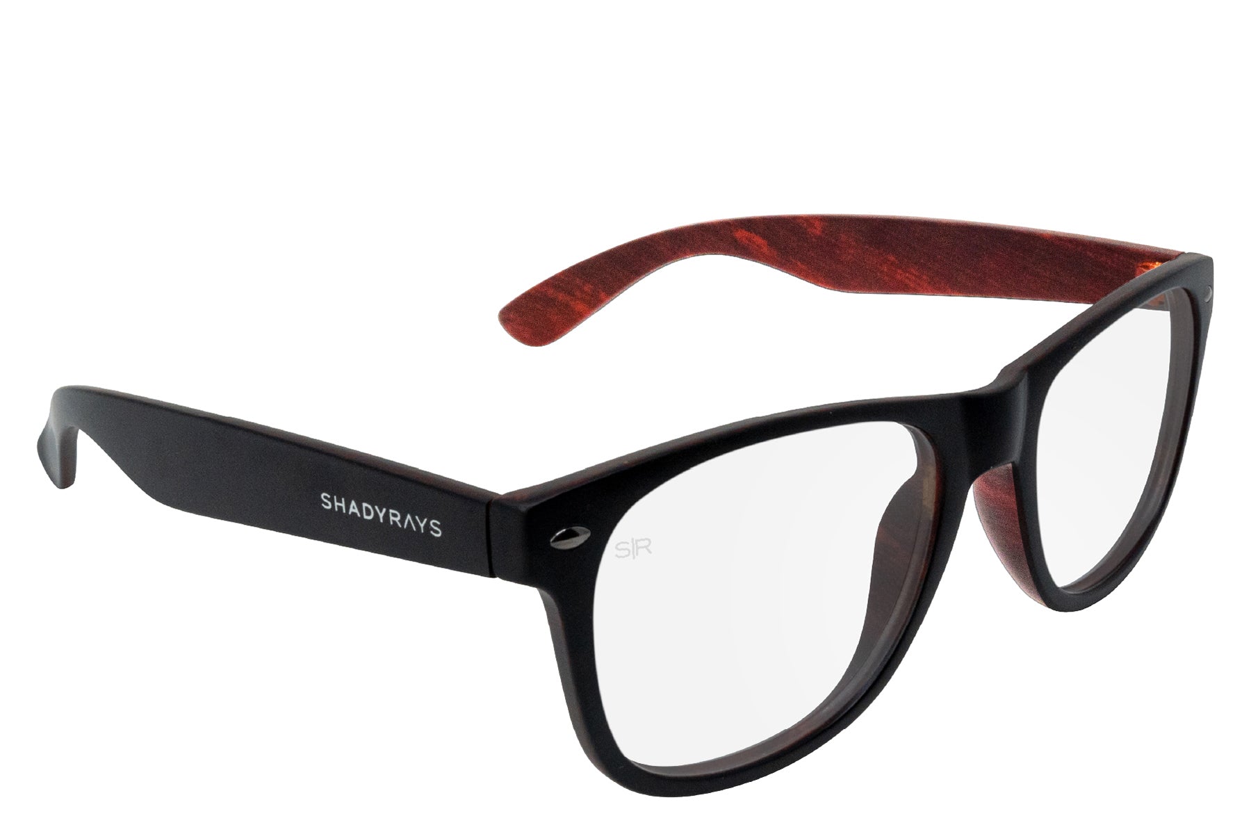 Smooth Matte black exterior accented with a wood-grain finish on the interior offering a sleek two tone style in our best selling Classic frame. Complete with prescription lenses custom-made in our US-based optical lab. Includes hard case.