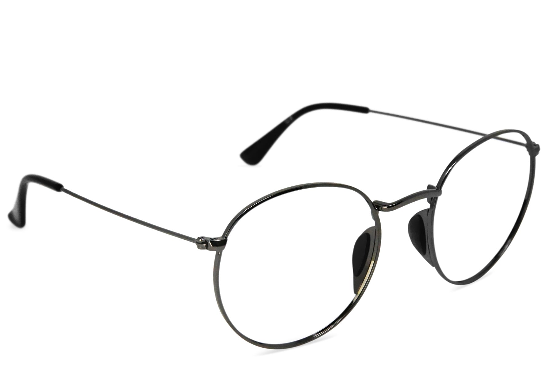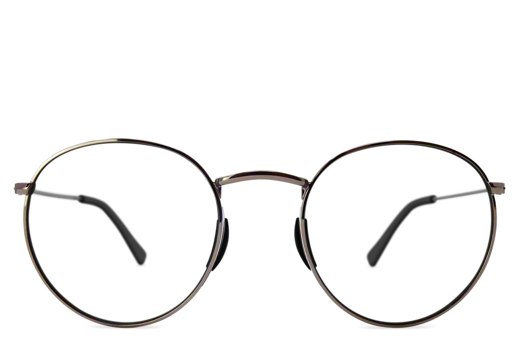 A classic round wire-frame design, upgraded with patent-pending comfortable nose pieces that won’t get caught in your hair. Gloss silver frame is complete with prescription lenses custom-made for you in our US-based optical lab. Includes signature hard case.